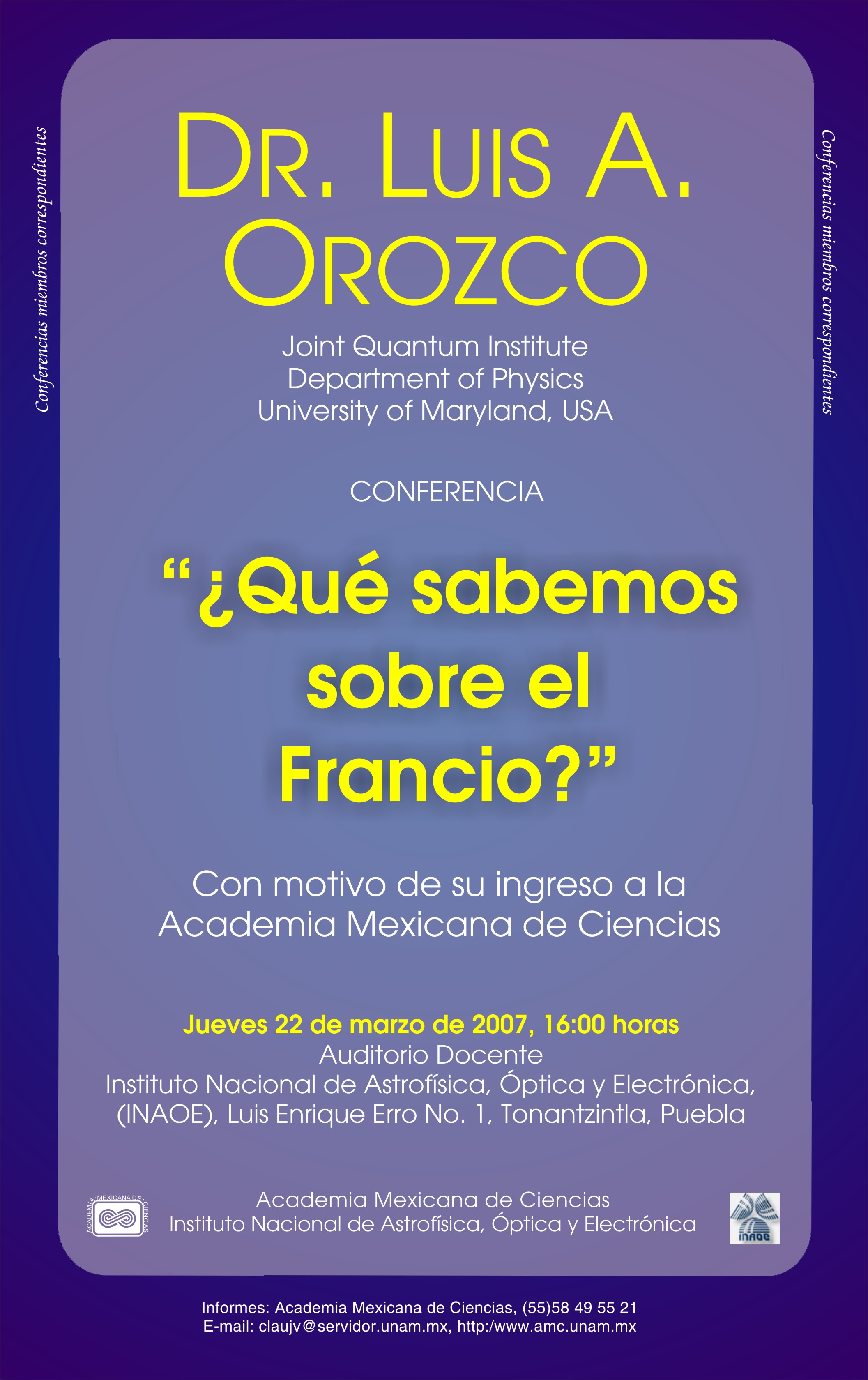 Mexicana de Ciencias (AMC) y el Instituto Nacional de Astrofísica, óptica y Electrónica (INAOE), invitan a